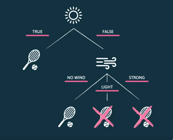 As árvores de decisão (decision trees) são um modelo de decisão original do machine learning simbólico. Estas são representadas por um grafo sem ciclos, onde um nó representa um teste a um valor assumido por uma variável. Assim, cada nó corresponde a uma proposição lógica. Cada nó tem tantas arestas, ou ramos, quantos os valores a variável pode assumir. Os nós terminais são folhas e representam os valores assumidos pela variável de destino, a classe. Cada ramo pode ser visto como uma conjunção de proposições, daí a sua origem no machine learning simbolista.