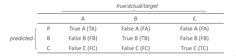 Na maior parte das tarefas de classificação, existem mais do que duas classes. Nesses casos, podemos extender o conceito da matriz de confusão para classificações não binárias.