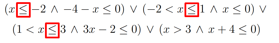 Para resolver esta inequação, temos de utilizar uma tabela de módulos, atendendo aos pontos em que os módulos mudam de sinal. Assim, ficamos com os pontos .