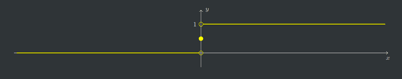 Começa-se por estudar a continuidade em . Como a função é constante em e , podemos assumir uma vizinhança de raio menor que o valor absoluto de (isto é, ). Desta forma, todos os valores na vizinhança vão ser iguais a (isto é, de valor 1 para e valor 0 para ). Logo, a função é contínua em .