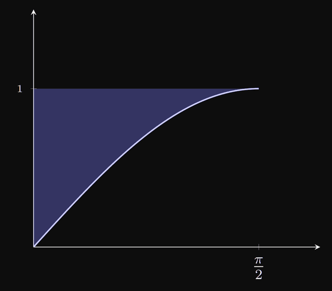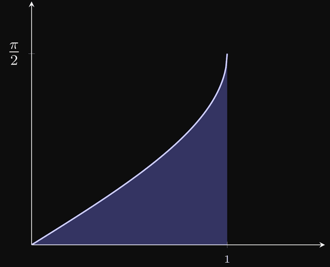 Podia-se calcular A=∫01arcsinxdx, mas existe outra maneira mais imediata, que consiste em permutar os eixos: