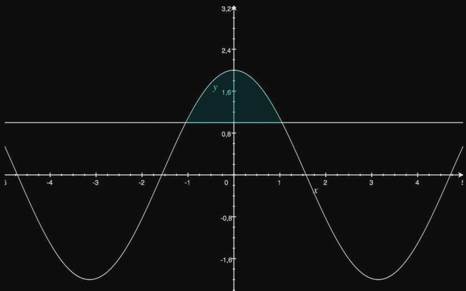 Definindo a função como restrita ao intervalo [1,3], pretende-se que o integral de f em [1,3] dê o valor da área sombreada, isto é, a área da região compreendida entre o eixo das abcissas e o gráfico da função, quando x∈[1,3].