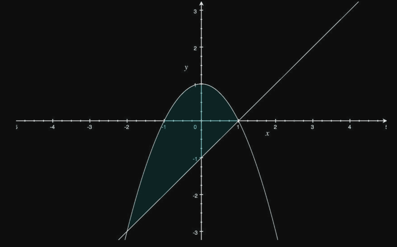Para encontrarmos a área de uma região do plano, fazemos a integral da diferença entre a função que delimita a área por cima e a função que delimita a área por baixo.