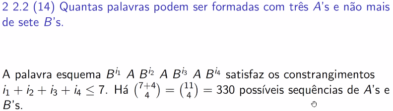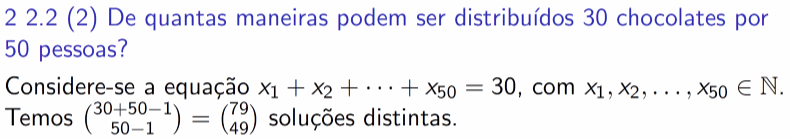 Neste ponto podemos ir buscar do nosso génio combinatório e usar os métodos discutidos na secção acima,