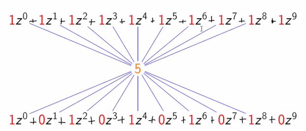 v(z)=1+z+z2+z3+z4+z5 ouv(z)=1−z1−z6=z−1z6−1