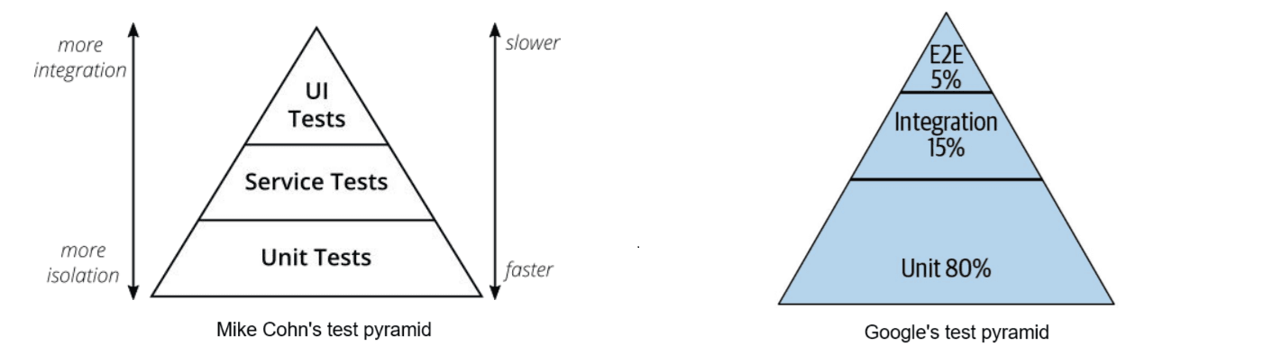 A pirâmide de teste (Test Pyramid) é um indicador de quantos testes de cada tipo devem ser criados para avaliar corretamente um sistema. Há vários modelos de pirâmides de teste, sendo que as versões faladas em aula são a de Mike Cohn (descrita no livro Succeeding with Agile: Software Development Using Scrum ou no post The Practical Test Pyramid) e a da Google (descrita no livro Software Engineering at Google).