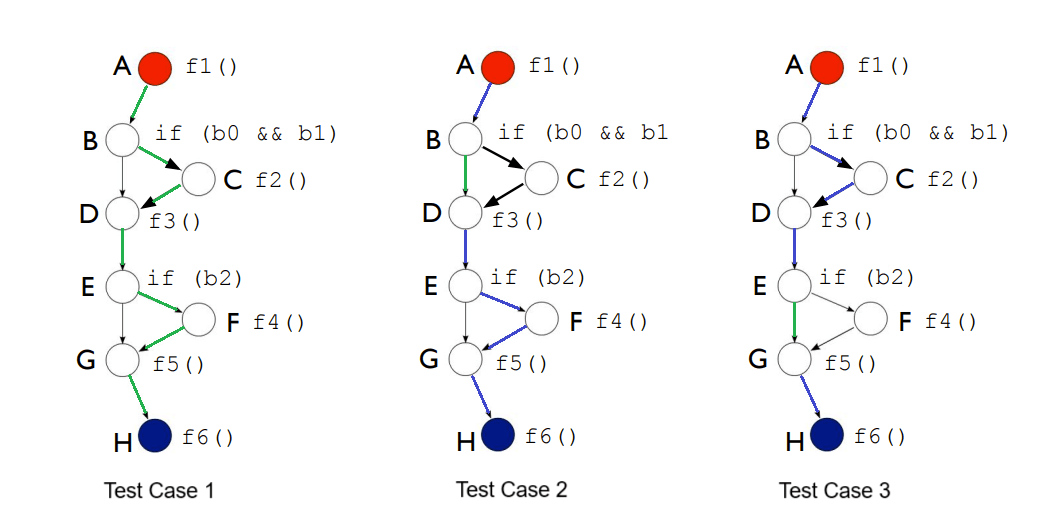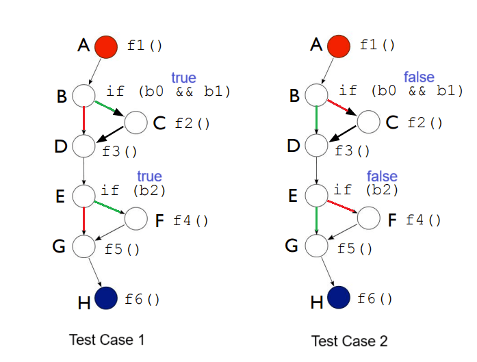 Verifica-se que, tendo em conta apenas os dois primeiros test cases, as condições b0 e b2 são