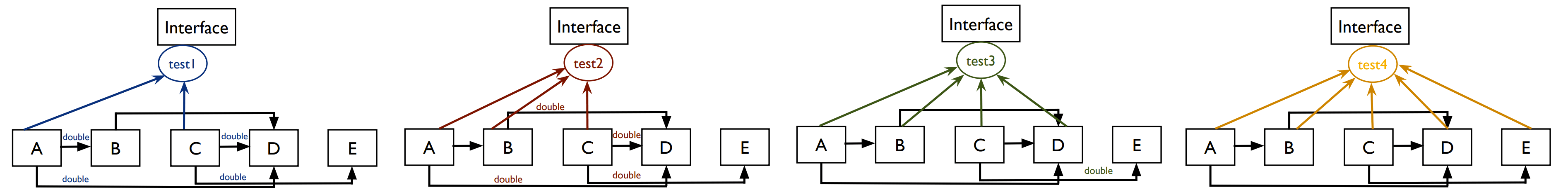 - Top-down Integration: testa primeiro as componentes de mais alto nível (recorrendo a test doubles para simular o comportamento de componentes mais baixas) e vai acrescentando incrementalmente módulos de mais baixo nível.