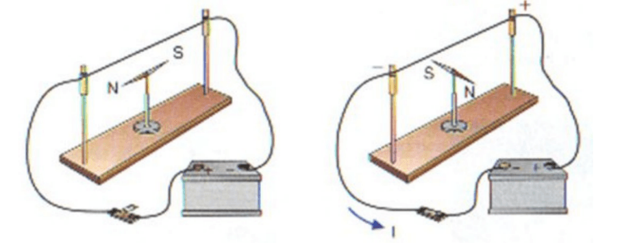 Ørsted verificou isso usando uma bússola e vendo que esta mudava a direção perto dos fios, sobre o efeito de corrente.