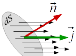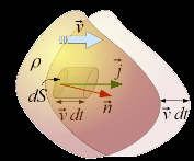 Para uma distribuição de cargas com densidade com uma velocidade (média) , quando passam por um elemento de superfície a carga que atravessa essa superfície num intervalo de tempo é igual à cargas contida num cilindro de base e altura
