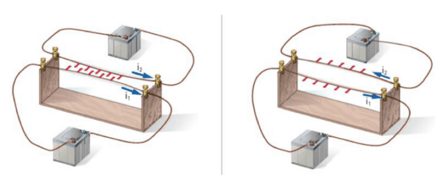Se colocarmos 2 fios condutores em paralelo com uma certa corrente podemos observar certos fenómenos: