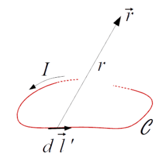 O Campo Magnético por um fio percorrido por corrente estacionária é dado por