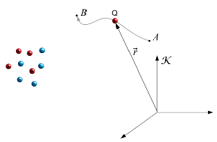 Para calcular o trabalho mínimo para uma carga Q Q Q se mover de A A A para B B B sabendo que existe um campo sabemos que existe sempre uma força (F ⃗ = Q E ⃗ \vec F = Q \vec E F = Q E )