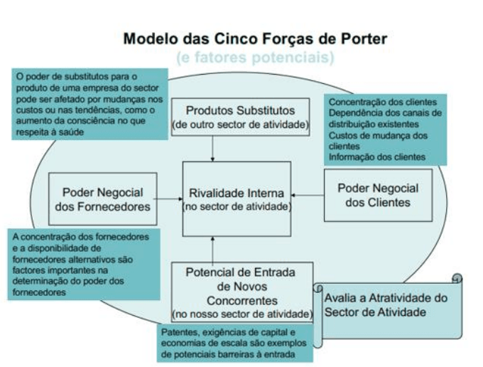 O Modelo das Cinco Forças de Porter faz uma análise a uma indústria/setor de atividade. Segundo este modelo, a intensidade da competição numa indústria, assim como o potencial lucro dessa indústria é função de cinco forças competitivas.