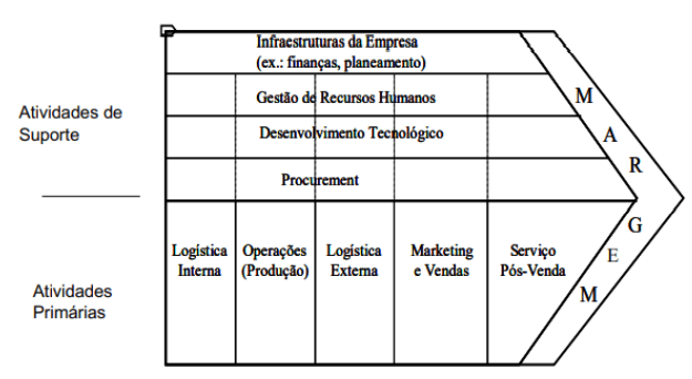Para análise interna usamos o modelo da cadeia de valor que agrupa o conjunto de atividades desenvolvidos internamente por uma empresa de modo a evidenciar como estas criam valor para os clientes.