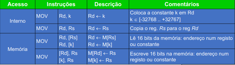 As instruções de transferência de dados são as instruções que nos permitem transferir dados entre dois registos ou entre um registo e a memória, como fazemos com o MOV e SWAP.