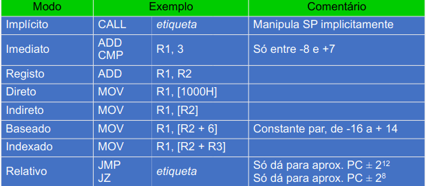 S1: BYTE 'a', "ola", 12HModos de endereçamento