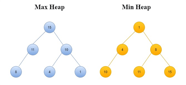 O heap sort utiliza a noção de heap, ou amontoado. A raiz desta estrutura deve conter sempre o menor/maior elemento do vetor (consoante queiramos uma min ou max heap). Considerando o caso em que o maior elemento do vetor é a raiz, podemos definir heap tal que: