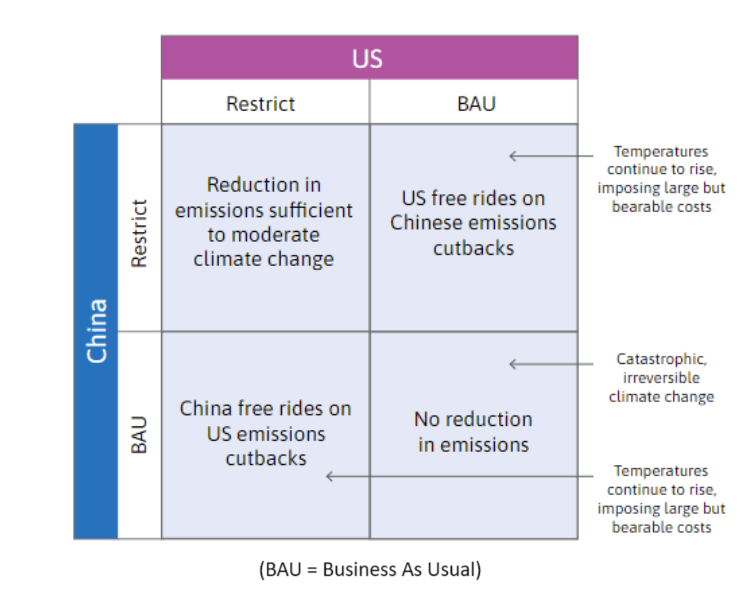 - Requer cooperação internacional, o que pode incorrer em situações como o Dilema do Prisioneiro.