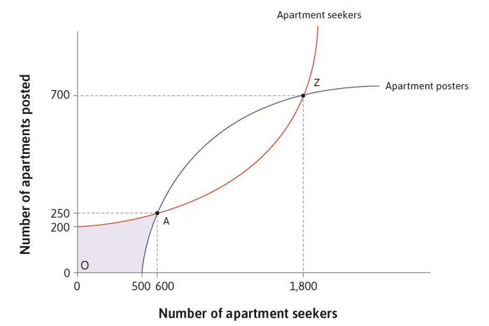 Os equilíbrios e são equilíbrios estáveis, enquanto é um equilíbrio instável. Isto porque entre e , o mercado não existe, sendo necessário haver primeiro um número suficiente de seekers ou um número suficiente de posters. Mas qual deles surge primeiro?