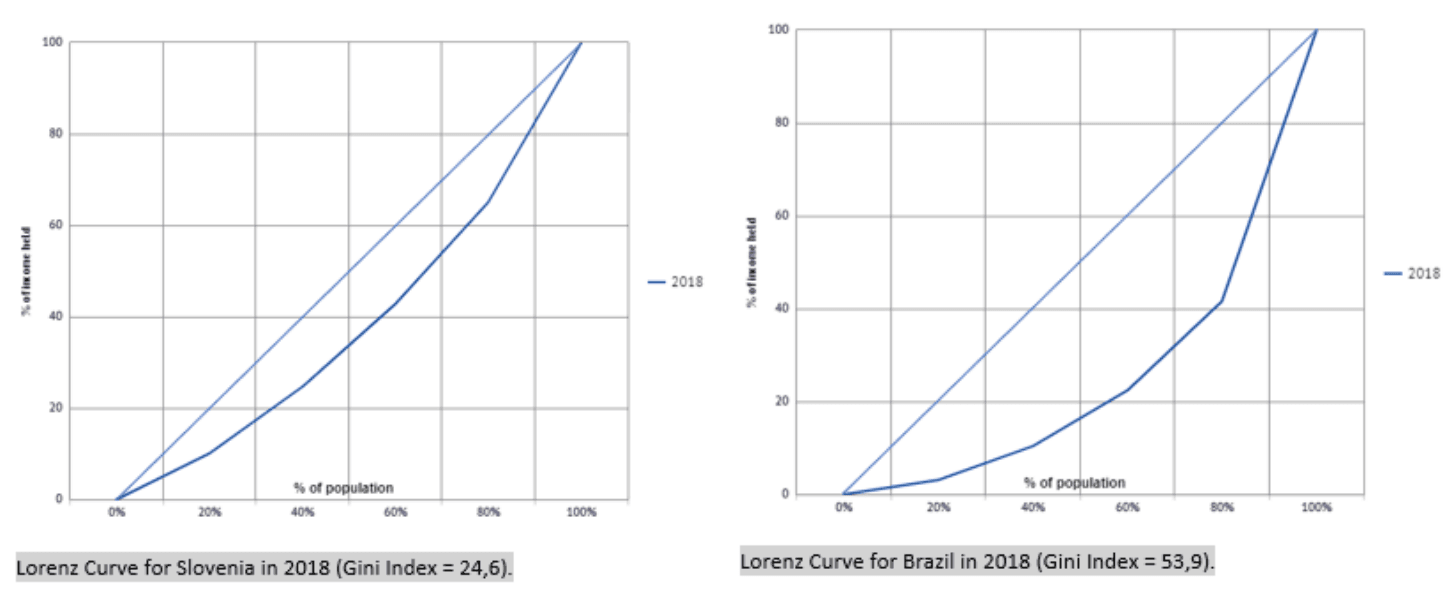 Analisando a figura anterior, verifica-se que a Eslovénia apresenta uma desigualdade inferior face ao Brasil.
