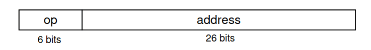 *: dado que a instrução só suporta um endereço de bits, só conseguimos saltar na mesma "secção" do programa. Conseguimos recuperar bits, dado que cada instrução tem bytes, pelo que os bits menos significativos são sempre zero. No entanto, ficamos com bits (os mais significativos) que não conseguimos controlar, pelo que estes são derivados do PC atual. Daí, só conseguimos saltar dentro de uma certa região do programa (embora esta seja muito grande).