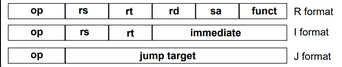 - rs, rt e rd: registos com valores que vamos usar, sendo que os dois primeiros são de origem (source, t (letra seguinte a s)) e o último de destino (destination);