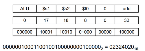 add $t0, $s1, $s2Assim, obtemos a nossa instrução em código máquina, em base hexadecimal.