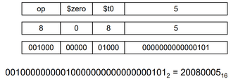 addi $t0, $zero, 5Subtração Imediata