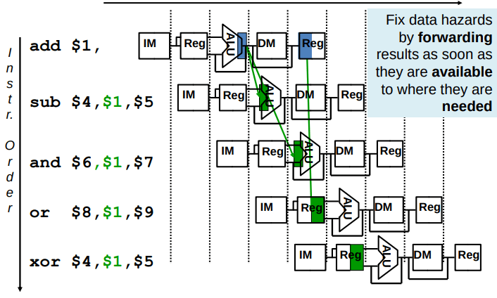 qualquer outra instrução aritmética. Se forwarding não fosse usado, teríamos de esperar