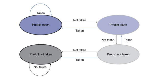 Um mecanismo que incorpora esta ideia é o 2-Bit Predictor, que muda a sua escolha caso ocorram duas escolhas erradas sucessivas.