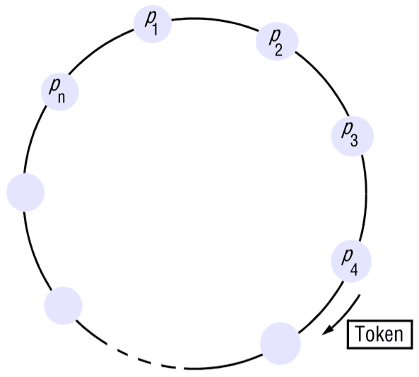 Uma das formas mais simples de estabelecer exclusão mútua entre processos sem utilizar um processo adicional é organizá-los num anel lógico. Isto apenas requer que cada processo tenha um canal de comunicação com o próximo processo no anel, .