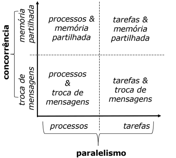 Quando estamos a programar concorrentemente, podemos fazê-lo segundo dois paradigmas: