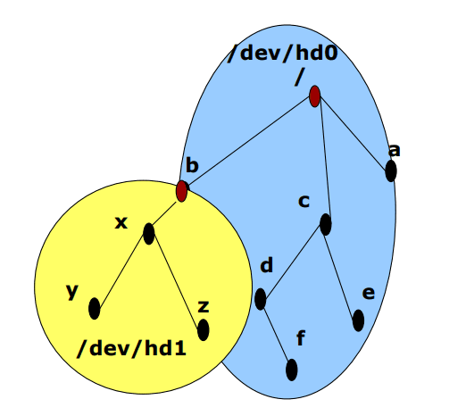 Na figura acima, liga /dev/hd1 ao diretório /b.
