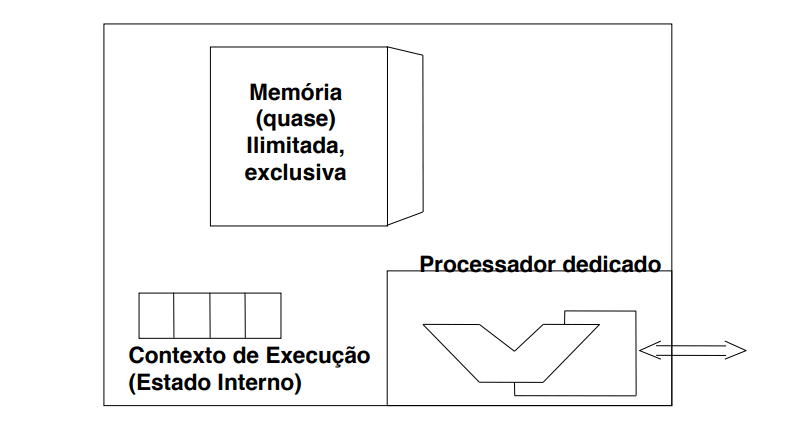 Pelo ponto de vista do processo este encontra-se isolado de tudo resto e com recursos ilimitados.