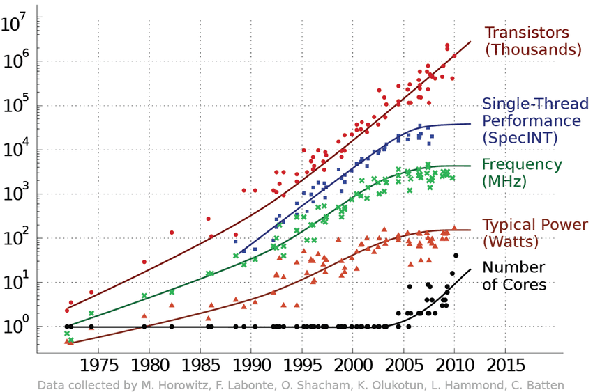 No entanto, a performance de uma thread do processador quase que estagnou no final da década de 2000.