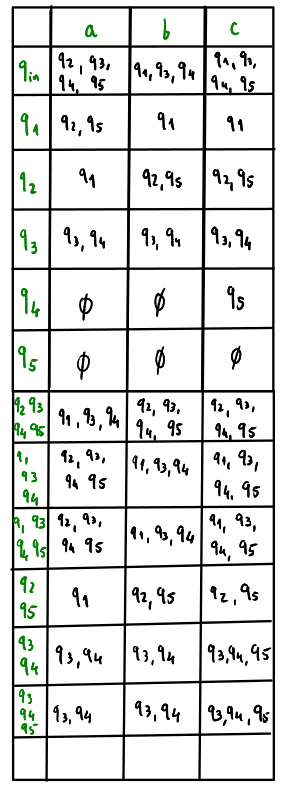 - define-se , para todo o . É conveniente pensar neste estado como um "estado lixo".