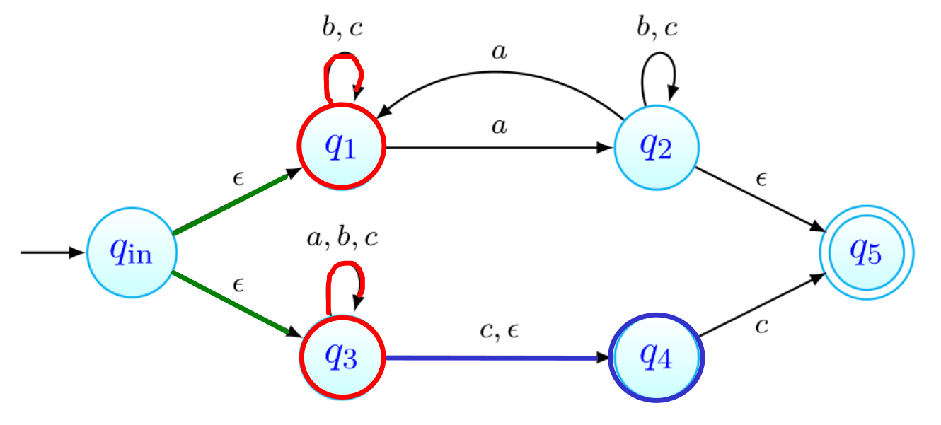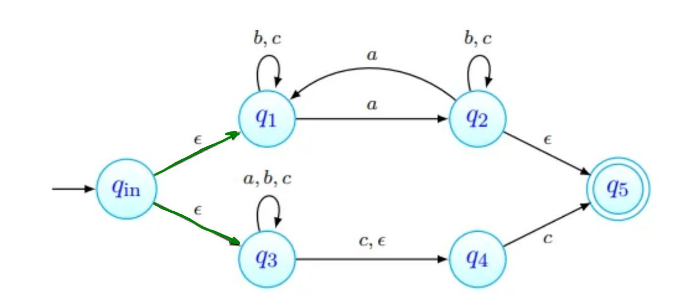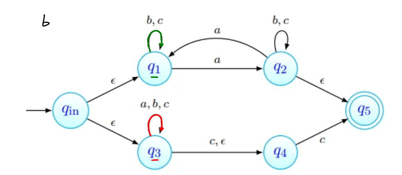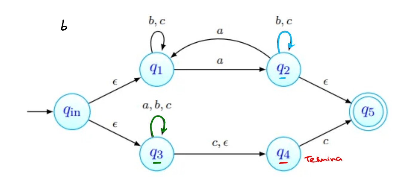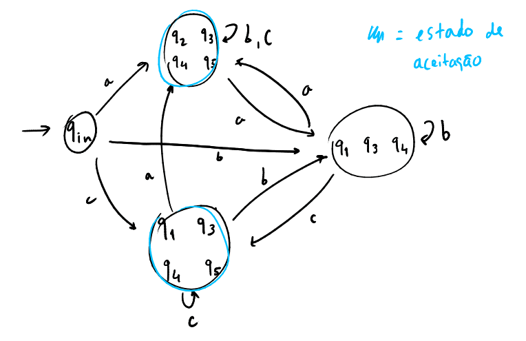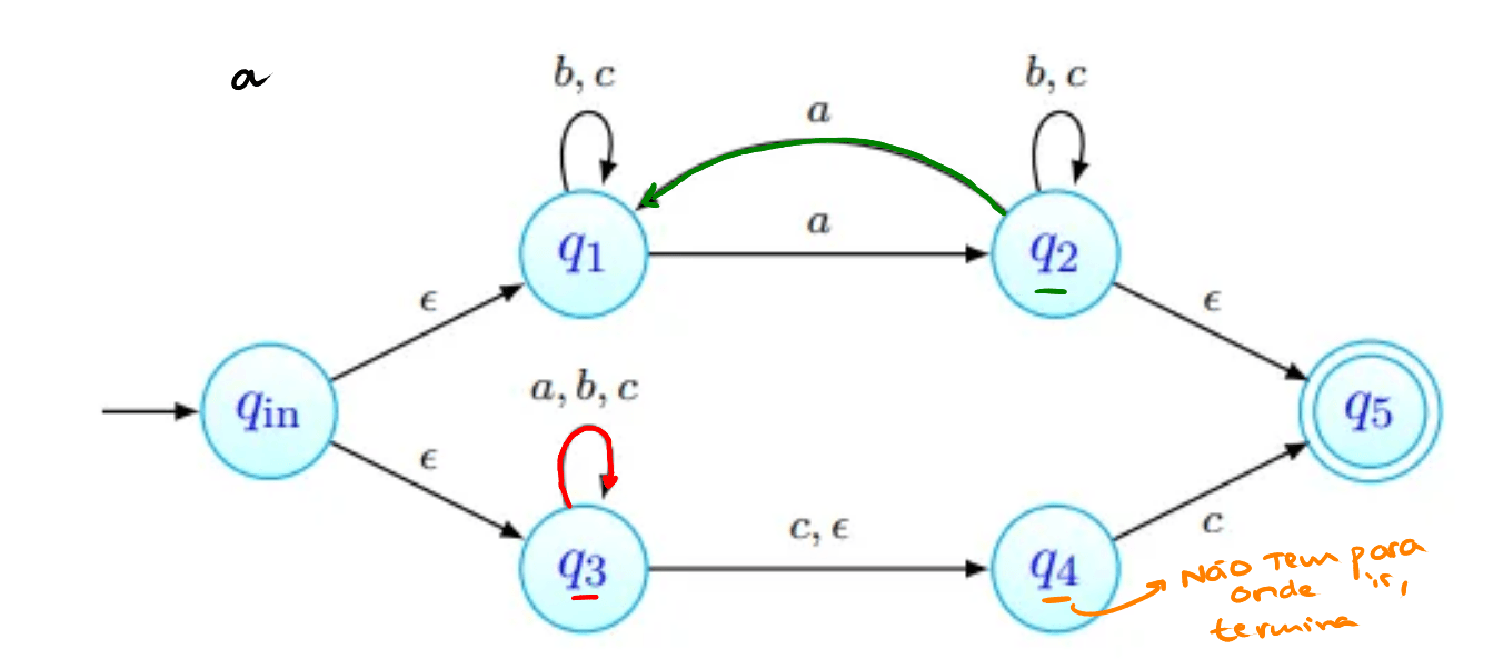 Observe-se que o que o AFND oferece é um autómato que a acrescenta a possibilidade de começarmos a ler uma nova palavra reconhecida por , sempre que estivermos num estado de aceitação (mudando para o estado ).