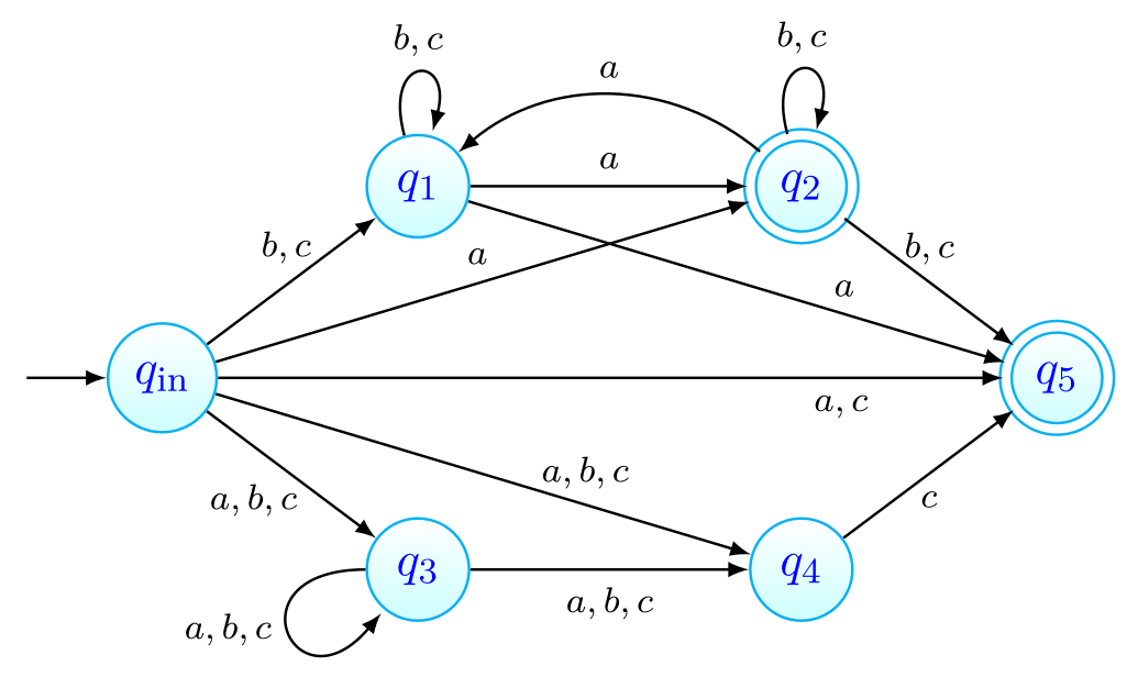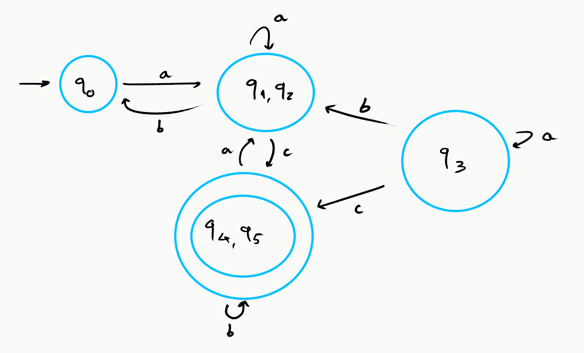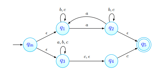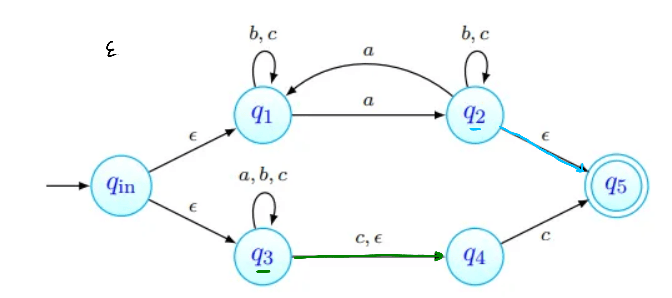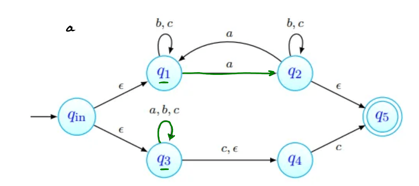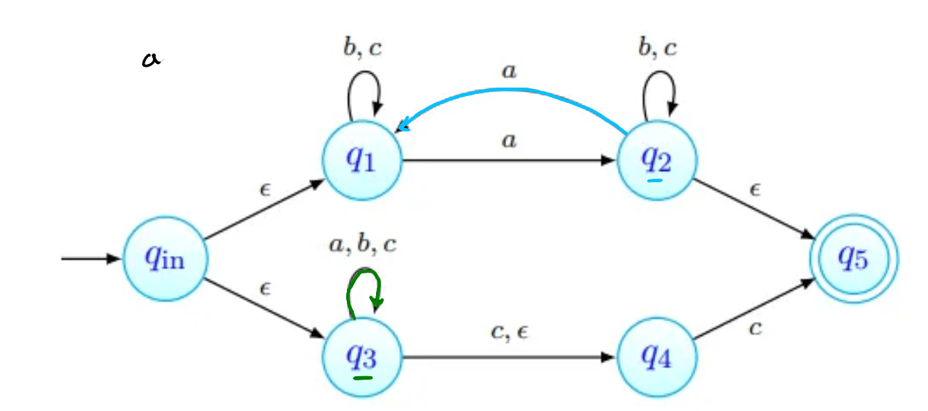 Observe-se que o que o AFND oferece é um autómato que a acrescenta a possibilidade de começarmos a ler uma nova palavra reconhecida por , sempre que estivermos num estado de aceitação (mudando para o estado ).